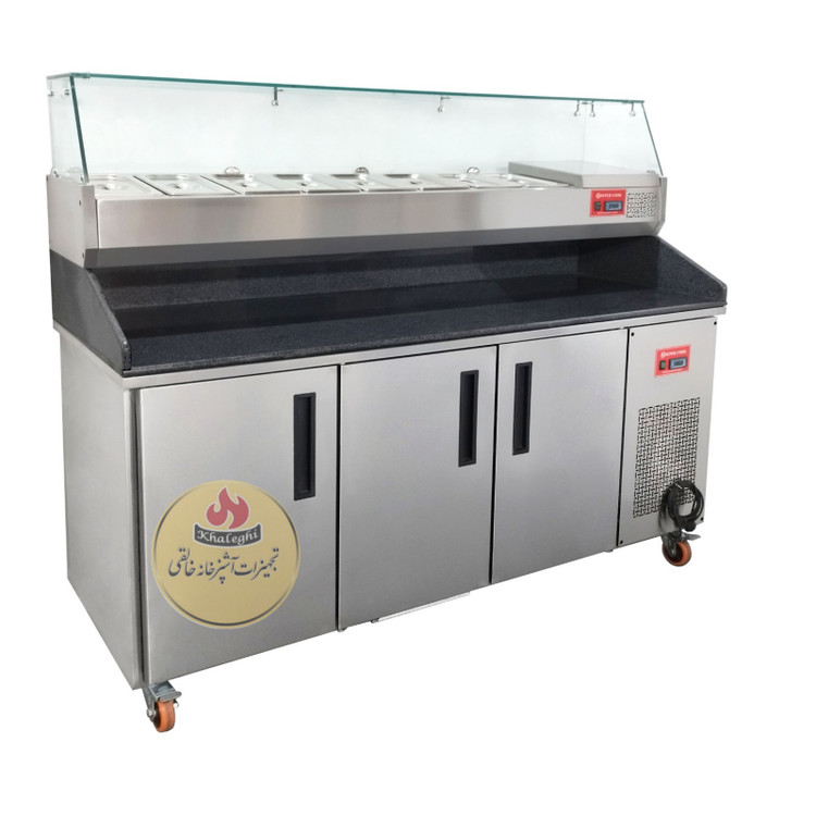 دستگاه تاپینگ رویه سنگ جهت نگهداری و دسته بندی مواد غذایی برای آماده سازی پیتزا ایتالیایی طراحی شده است که در فست فود ها کارایی بسیار زیادی دارد.