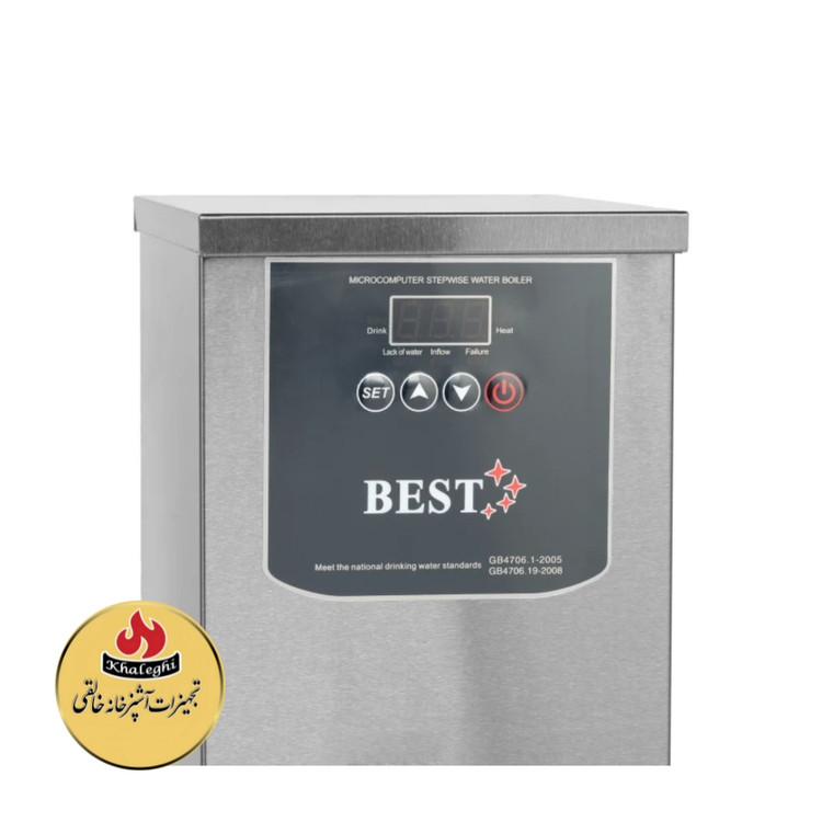 بویلر اب 30 لیتری بست (BEST) مدل PSM_03N در دو رنگ سفید و مشکی موجود می باشد و همچنین ظرفیت این دستگاه 30 لیتر می باشد. همچنین این دستگاه دارای دو مخزن اب سرد و اب جوش است. جنس بدنه این دستگاه از استیل ضدزنگ می باشد. که دارای مقاومت بسیار بالایی است. بویلر بست قابلیت اتصال به اب شهری را نیز دارد و این دستگاه دارای توان مصرفی 3 کیلو وات می باشد . بویلر بست دارای استیمر نیز می باشد. که قابلیت تولید کف شیر با کیفیت بالا را نیز دارد . بویلر بست دارای ظاهر زیبا و اندازه بسیار مناسب می باشد. حتی می توان ان را در کوچک تر نیز مورد استفاده قرار داد . این بویلر اکثرا در کافس شاپ ها،رستوران ها،دفاترکار،اداره ها و …… مورد استفاده قرار می گیرد و امروزه که اب جوش یکی از موارد مورد نیاز و حیاطی هر کافی شاپ می باشد. با این بویلرها می توان همیشه اب جوش در اختیار داشت و در کن ترین زمان ممکن چای،قهوه،نسکافهو دمنوش تهیه کرد .