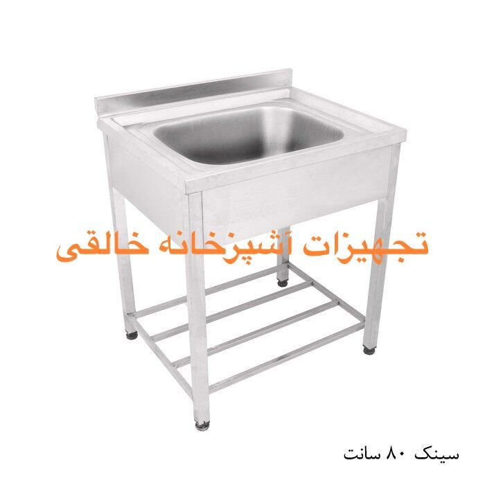 سینک صنعتی تولید تجهیزات آشپزخانه خالقی با ورق ضخامت ۰٫۸ میل و پایه پروفیل استیل ، جنس ورق استیل ۳۰۴ با مقاومت و کیفیت ساخت بالا