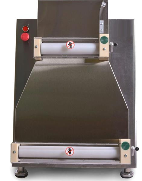 خمیر پهن کن پیتزا 40 سانتی متر ATS به دلیل دو ردیف غلطک موازی خمیر کاملا گرد با لبه سالم و با قطرثابت تولید می کند و از کاربردی ترین تجهیزات فست فود می باشد. همچنین قابلیت تنظیم ضخامت از 1 – 2.5 میلی متر و حداکثر قطر پیتزا تا 40 سانتی متر از بهترین مزیت های این دستگاه بشمار می آید. این خمیر پهن کن ATS توانایی تولید 500 خمیر در هر ساعت را دارد. و به دلیل عملکرد دو مرحله ای سبب حفظ حالت اسفنجی خمیر می شود.
