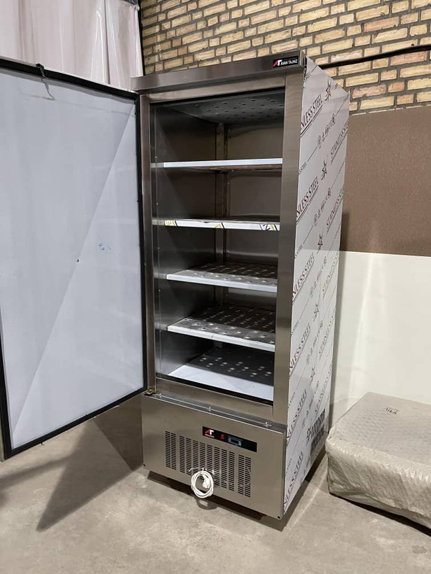 فریزر صنعتی ایستاده تمام استیل با ابعاد ۸۰×۸۰×۲۲۵ سانت فول استیل خش دار ضدزنگ ، ضخامت ۰.۸ میل ، عایق بدنه این فریزر صنعتی فوم تزریق میباشد با موتور ۳/۴ امبراکو با گاز ۴۰۴ دارای ترموسات دیجیتال آلمانی ، این فریزر صنعتی ۵ طبقه میباشد و پلیت مسی لوله ۱۲ با ضمانت یک ساله این فریز با قابلیت ساخت درب شیشه ای ۲ درب و میباشد و همینطور ۲ طرف شیشه