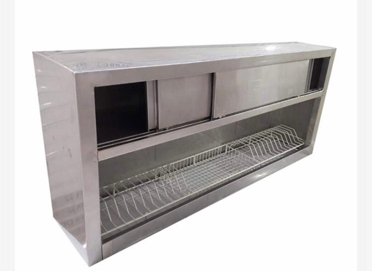 کابینت آبچکان دیواری در ارتفاع ۶۵ درعرض ۳۰ در طول به اندزهای ۸۰سانت ۱متری ۱/۲۰سانت۱/۵۰سانت۱/۹۰ سانت که بصورت ۲ طبقه که طبقه اول آبچکان و طبقه بالا کابینت با درب ریلی میباشد این کابینت به صورت ۲ طبقه آبچکان بادرب ریلی ، یا درب کمدی ، یا بدون درب ساخته و سفارش پذیرفته میشود جنس استیل این کابینت ورق ۸ دهم از استیل ۴۳۰ ضد زنگ ساخته میشود و آبچکان آن مفتول آهنی با روکش تفلون ضد زنگ میباشد