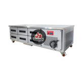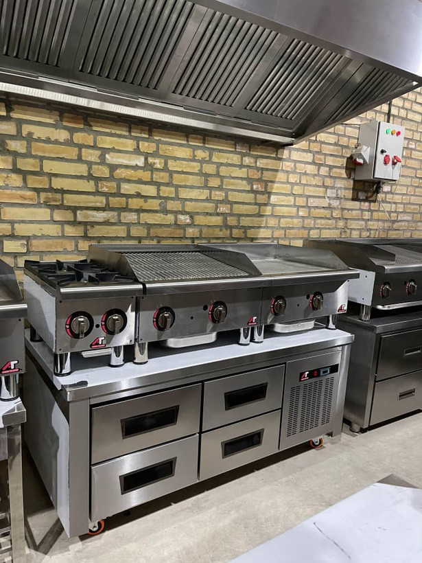 یخچال زیر گیر درب کشویی در اندازهای ۱/۲۰ سانت ۲ کشویی با موتور ۱/۳ در اندازه ۱/۵۰ سانت ۴ کشوی باموتور ۱/۲در اندازه ۱/۹۰ سانت ۶ کشویی با موتور ۳/۴ فول استیل ۴۳۰ ضد زنگ دارای درجه و نشانگر دیجیتال با موتور امبراکو ضخامت ورق ۸ دهم بدنه فوم تزریق داری ۴ عدد چرخ این زیر گریل به صورت یخچال، فریزر تولید میشود با بدنه شاستی کشی آهنی از نظر استحکام قوی که به راحتی خط گیریل را آن قرار داد متحرک دارای ۴ عدد چرخ گردان کشوی دستگاه با ریل صنعتی از جنس استیل زد زنگ میباشد کف و بدنه کشوها پانچ میباشد که گردش هوا و دما در تمامی قسمتها به صورت یکنواخت میباشد این یخچال ، یا فریزر از نظر سیستم سرما رسانی تقویت شده که در شهرهای گرم و آشپزخانهای بسیار گرم به راحتی به درجه دمای دلخا میرسد از نظر عایق بندی وکیوم دربها به صورت تخصصی طراحی ؤ تولید شده است