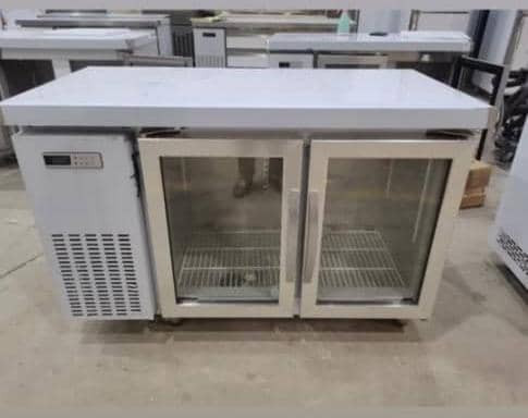جنس بدنه این یخچال میزکاری استیل با ضخامت 8دهم 430 ضد میباشد زنگ با بدنه فوم تزریق درب شیشه ای دو جداره فول استیل دارای طبقه وسط با موتر ۱/۲ امبراکو و گاز 404 این یخچال تمام لوله مسی بوده و 1 سال ضمانت دارد دارای 4 عدد چرخ لاستیکی برای متحرک بودن